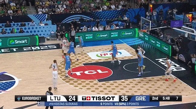 欧锦赛1/4决赛,立陶宛76-87不敌希腊。